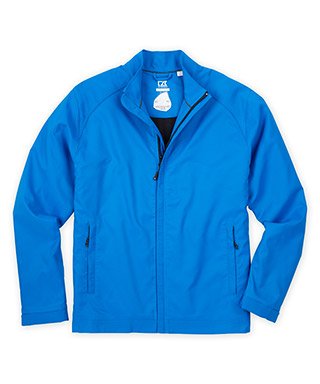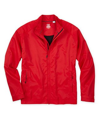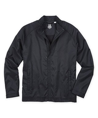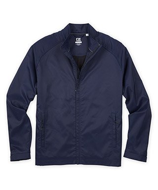 Binding : Apparel Product Description Description 100% Polyester, Dobby, Mock neck, Full zip, Single welt zippered front pockets, Self fabric piping details, Adjustable velcro cuff, Fully lined, Zipper in lining for embroidery access, CB pennant heat transfer at back neck, Breathable, Light weight, Wind and water resistant.
