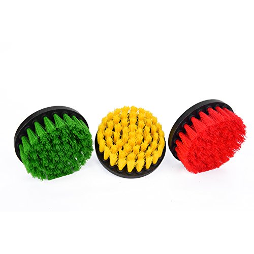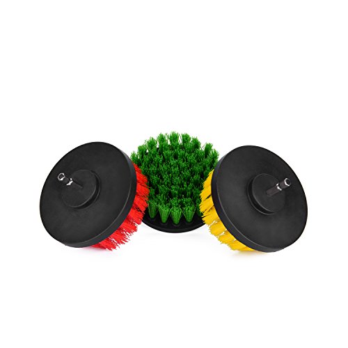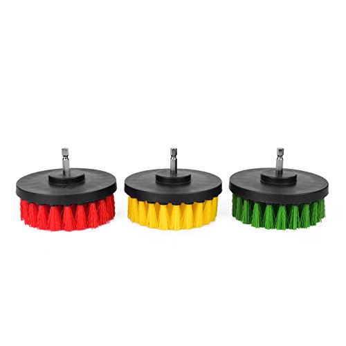 - ✅ Yellow Brush: Medium bristles - For cleaning bathroom, bathtub, tiles, shower or any kind of porcelain. ✅ Green Brush: Medium Bristles - For heavy stained cleaning like kitchen, cabinet, counter & stove ✅ Red Brushes: Stiff Bristles - For cleaning outdoors like garage, bricks, gutters & sidings