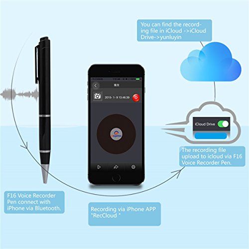 2. F16 Voice Recorder Pen connect with iPhone via Bluetooth.