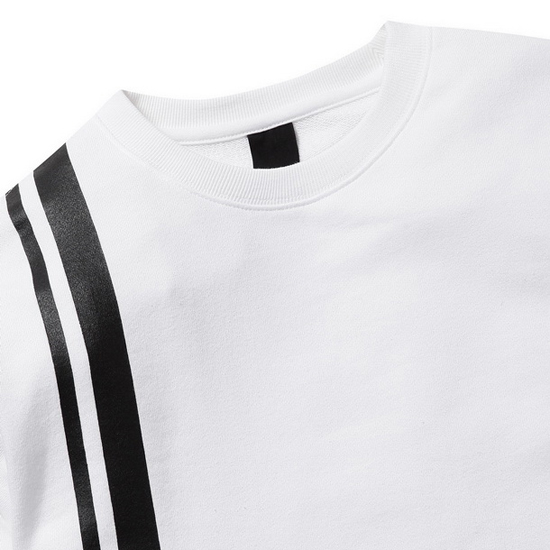 - 몸판 사이드 라인 프린트의 공용 맨투맨 티셔츠.