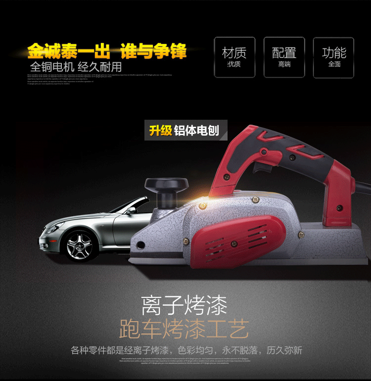 Upgrade aluminum planer, soft plastic handle, all copper wire motor, ion paint,