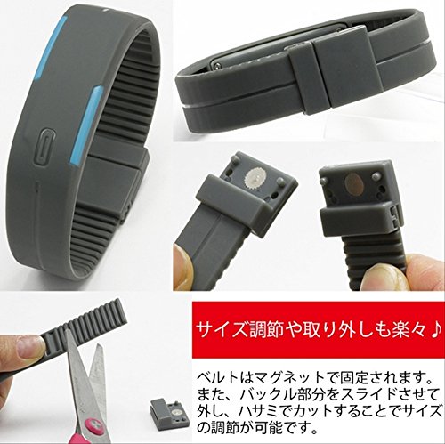 -. Feature : ラバーバンドのようなデザインにLEDのデジタルムーブメントを搭載した、遊び心溢れるブレスレット腕時計。 / [サイズ] 文字盤:19mm×50mm/厚さ9mm、幅:19mm、腕周:149mmから209mmまで調節可能。ベルトのバックルをスライドさせて取り外した後、ハサミでカットすることでサイズ調節が可能。 / [仕様] LEDデジタル(電池式)。日付表示機能。日常生活防水。ムーブメント:日本製。[素材] 樹脂、ラバー。 / ボタンを押すことで、時刻、日付、秒が個別に表示されるなど、多機能のムーブメントで機能面も◎。 豊富なカラバリでコーティネイトのアクセントにも最適。雨や汗なども気にせず使えるので、デイリーに活用頂けます。 / [OHAGI]パッケージ。取扱い説明書付。