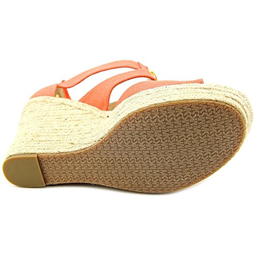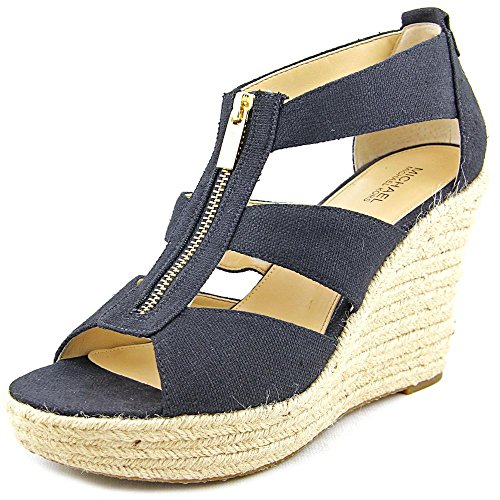 The height of fashion... the Damita platform sandals are the ultimate summer wedge. The heel is the perfect height and the lightweight leather comes in four super cute colors. The zipper detail along the front provides the chic and glamorous touch that MICHAEL Kors is known for. Round open-toe platform wedge sandals with zipper closure on front 3-3/4" espadrille wedge heel, 1" platform, feels like 2-3/4" heel Fabric upper; manmade soleFeature