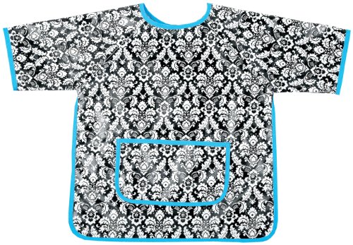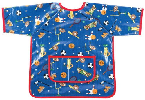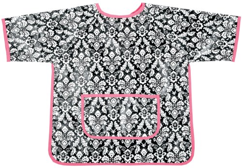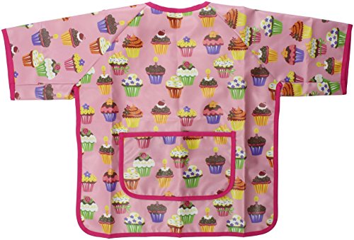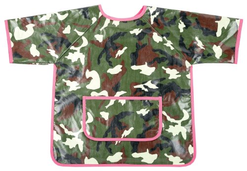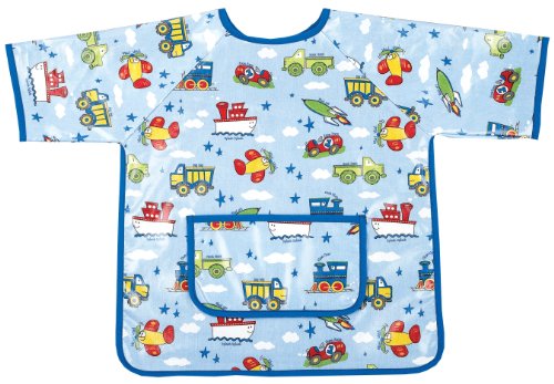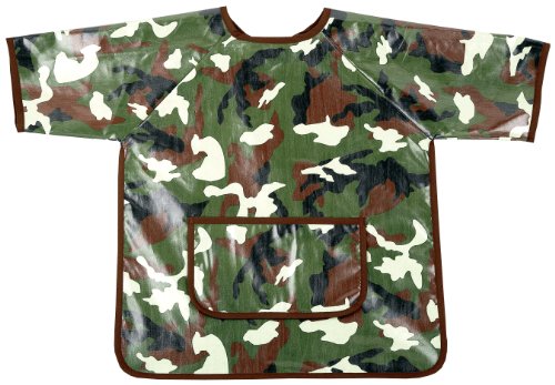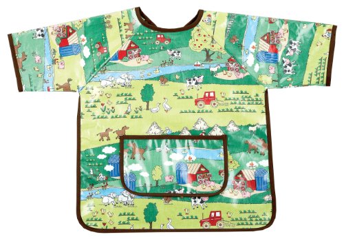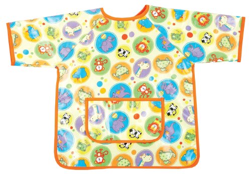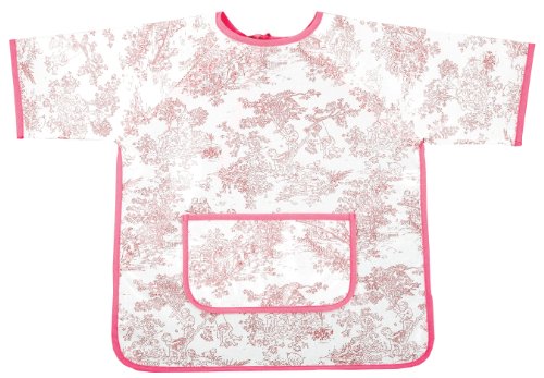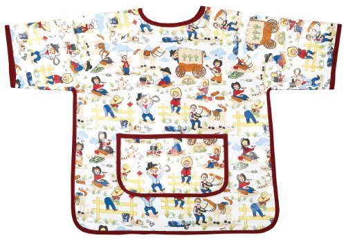 This full coverage Paint Smock will keep your child clean while they are making masterpieces. It has a fun print and is made in the USA. The laminated fabric makes it simple to wipe it off, but it is also machine washable. The deep pocket in front is ideal for carrying brushes, crayons, and other art supplies. It ties at the neck for easy on and easy off. It is ideal for young children and toddlers. (Size 2T 4T). Note: Size: “2T – 4T” means Length: 21", Width at waist: 18" and Sleeve to Sleeve: 31"Feature