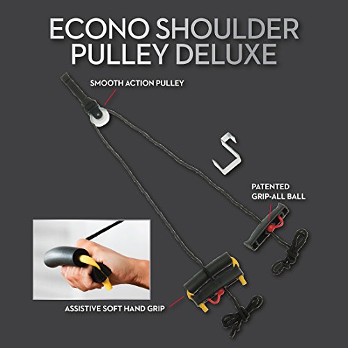 Studio : Pivotal 5, Inc Publisher : Pivotal 5, Inc Binding : Sports Product Description The revolutionary Lifeline Econo Shoulder Pulley increases range of motion in all planes of shoulder movement. Its patented handle design makes the rehabilitation process easier due to the quick adjustability of length. Move from exercise to exercise with ease of adjustment quickly. Limited grips is not a problem anymore. Our patented and doctor recommended assistive grip comfortably holds the hand in place at the knuckles rather than the wrist to promote circulation. 0