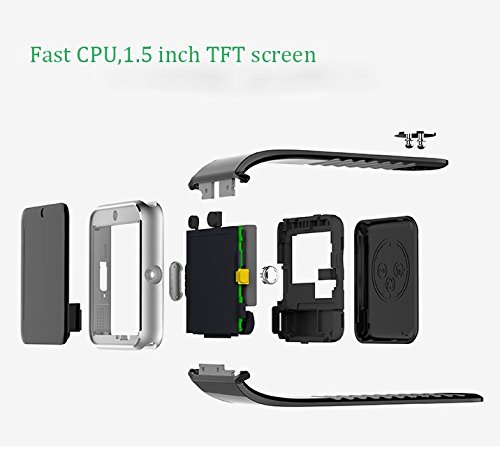 -. Feature : SIM and TF Slots Design: The Smart Watch acts as a phone with a micro SIM card, you can also write and send messages via the Smart Watch. Expand its storage for MP3/MP4 files with a TF card, supports maximum 32G / Make and receive phone calls directly from the smart watch. / Fully compatible with Android Powered smart phones. Please be noted, Message notifications, Facebook & Twitter Notifications are unavailable for iPhones, WP phones and blackberry phones. / Pedometer, Sleep Monitor, Audio Player, Video,Camera, Calendar, Calculator, Facebook, Twitter, Stop Watch etc / Sync Function: Check all notifications on the cool little Smart Watch. Facebook, Twitter, Messages etc