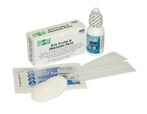 -. Feature : Eye flushing solution for irrigating the eyes, eye pads and adhesive strips / Kit includes 1 bottle, 2 pads and 2 strips / Great addition to any first aid kit / Perfect for standalone first aid or as a refill for a kit