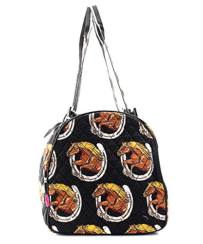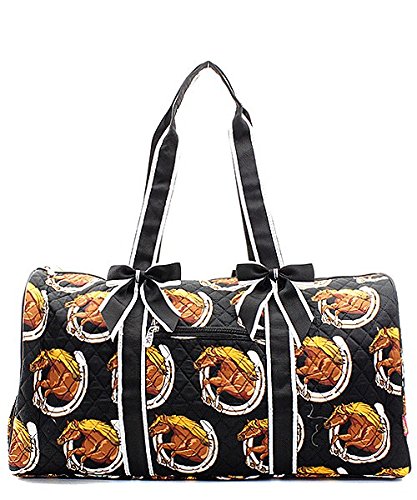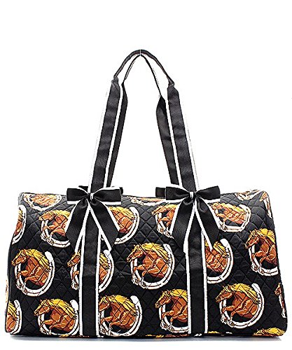 -. Title : Handbag Inc Quilted Horse Shoe Print Large Duffel Bag with Ribbon Accent