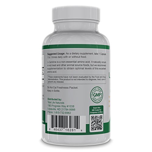 If you're tired of carrying around excess body fat... if you're looking for a safe, quick way to shed those extra pounds at last... then you've got to try this L-Carnitine 500mg Supplement by Total Life Naturals! Our product features pure, top-quality L-Carnitine, a widely studied amino acid proven to aid in fat burning, workout performance, and post-exercise recovery. Taken before a workout, it supports greater endurance that helps you exercise longer, burn more calories and fat, and enjoy better overall results.