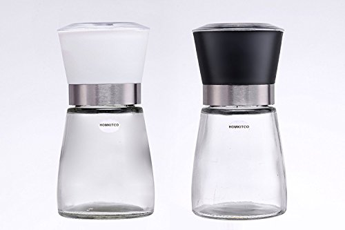 PREMIUM QUALITY - HOMKITCO Salt and Pepper Grinder Set have modern and elegant unique design. The fresh plastic grinders with high quality glass body and non-corrosive ceramic blades are perfect addition to any kitchen.