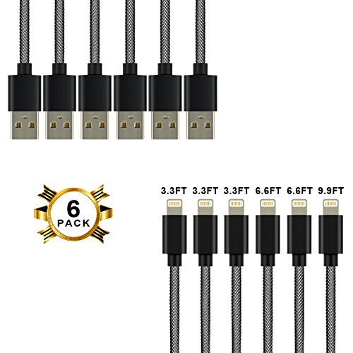 -. Title : [ 6-Pack ] High Speed Nylon Braided USB to Lightning Charging Cables (3FT/3PC, 6FT/2PC, 10FT/1PC (Black)