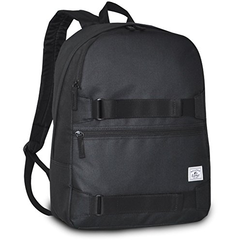 - DESIGN Dual zippered front pockets, padded shoulder straps and dual velcro straps to hold skateboard or any suitable equipment.