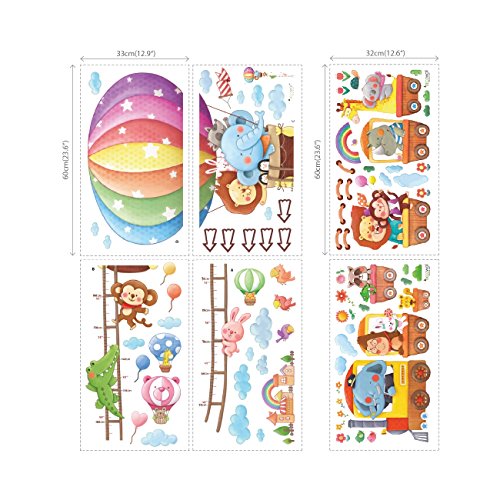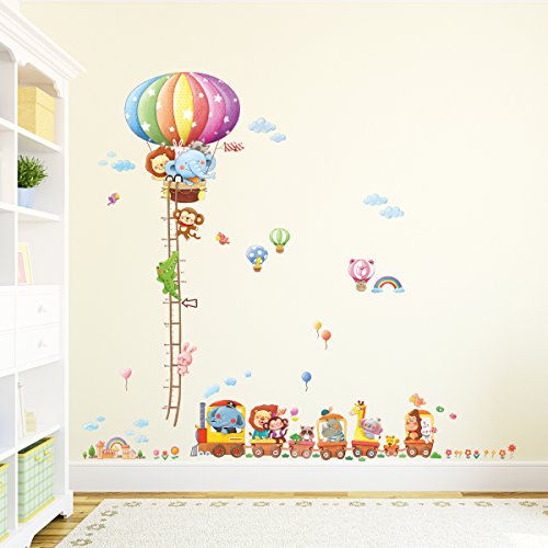 -. Title : Decowall DM-1606P1406A Animal Hot Air Balloon Height Chart and Train Kids Wall Decals Wall Stickers Peel and Stick Removable Wall Stickers for Kids Nursery Bedroom Living Room