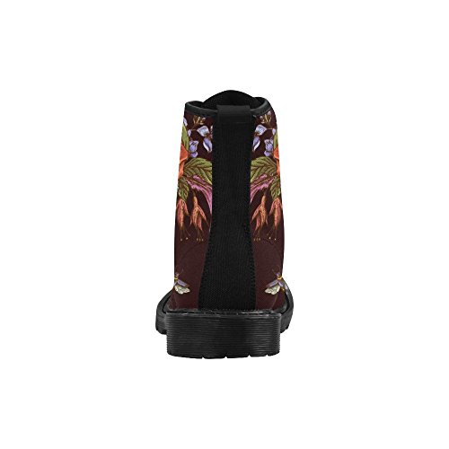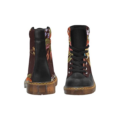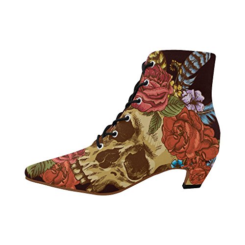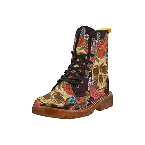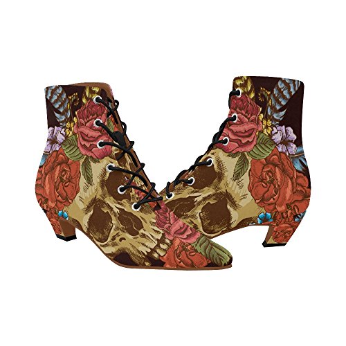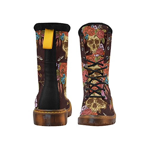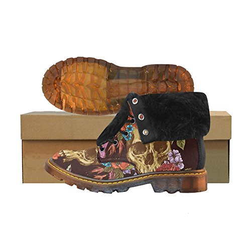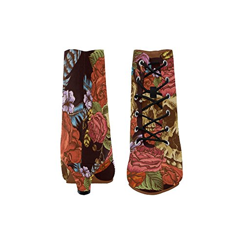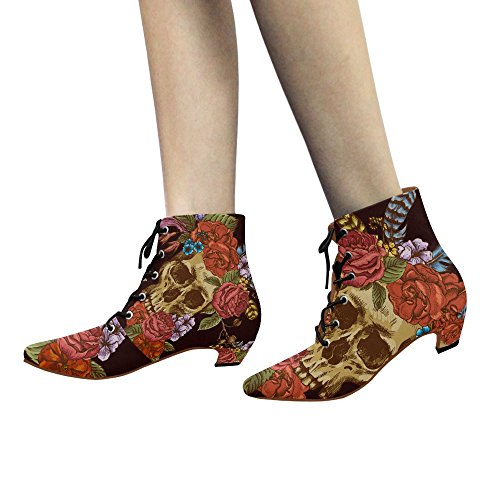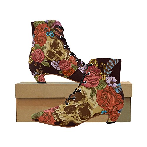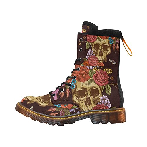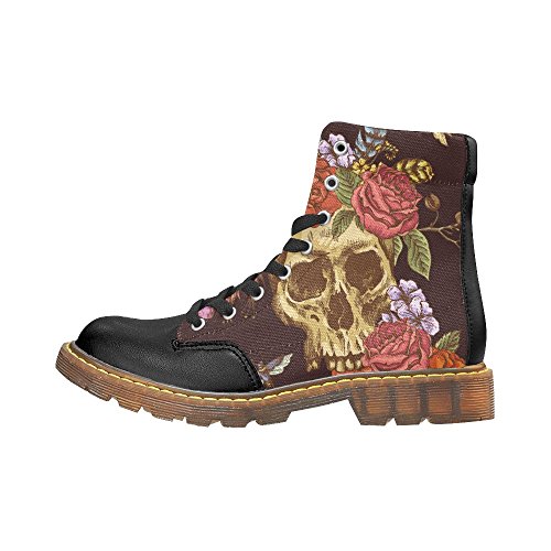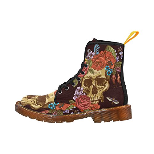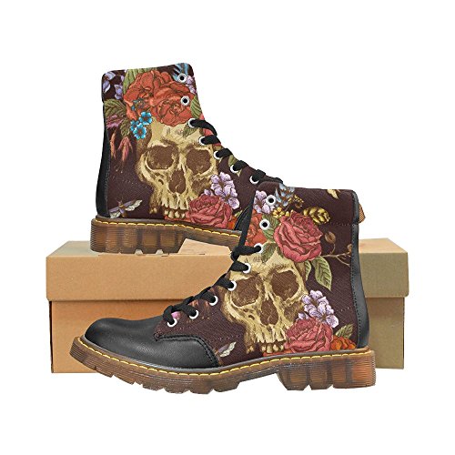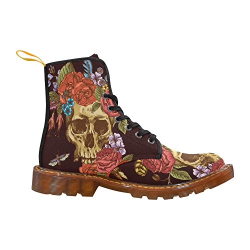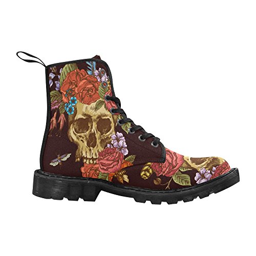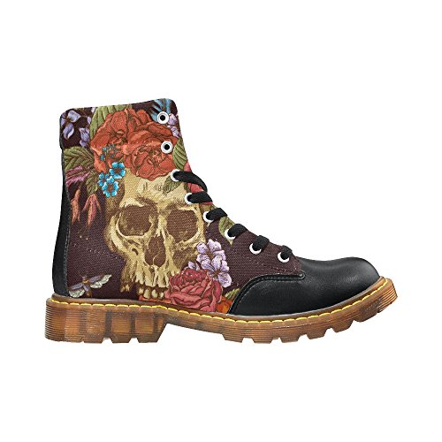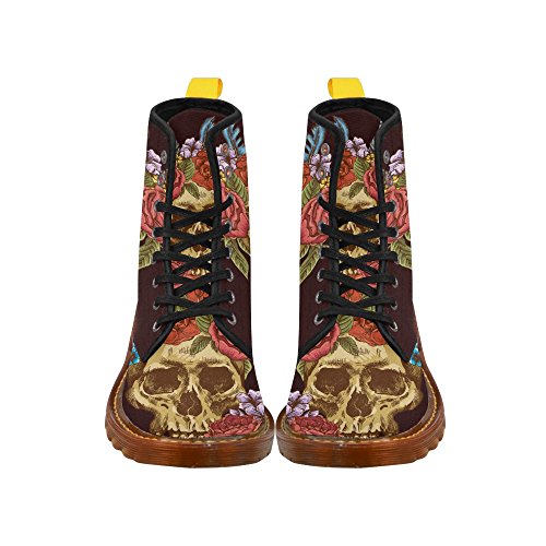 D-Story Shoes Skull and Flower Lace Up Martin Boots For Women