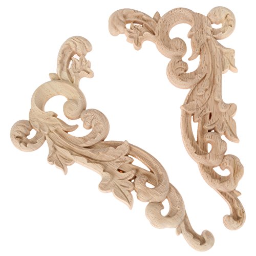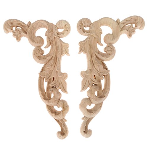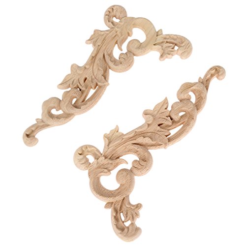 2pcs Wood Carved Corner Onlay Applique Frame Furniture Craft Unpainted 19x11x0.8cm