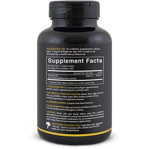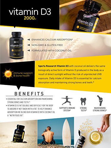 -. Binding : Health and Beauty -. Brand : Sports Research -. IsAdultProduct : 0 -. Label : Sports Research -. Manufacturer : Sports Research -. PackageQuantity : 1 -. ProductGroup : Health and Beauty -. ProductTypeName : HEALTH_PERSONAL_CARE -. Publisher : Sports Research -. Studio : Sports Research -. Title : Vitamin D3 enhanced with Coconut oil for better absorption - 360 Mini-Softgels
