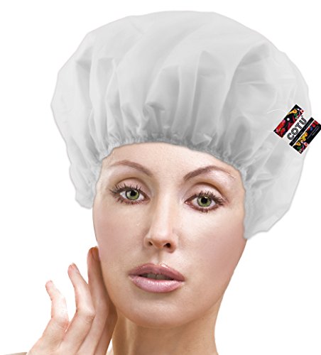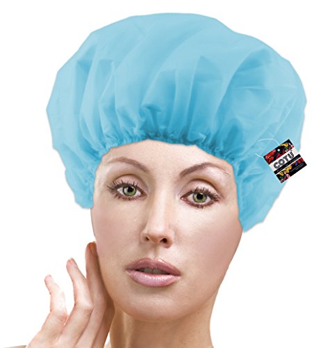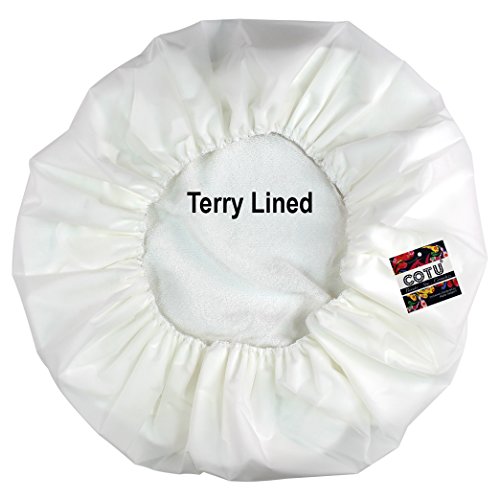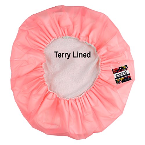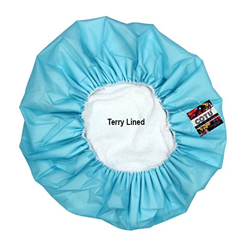 COTU (R) soft terry lined vinyl waterproof shower cap can protect any hairstyle. One size fits most. Assorted Colors.