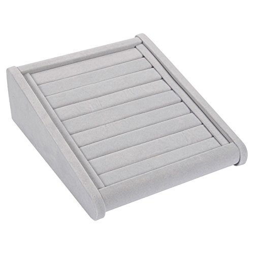 Jewelry Display - Jewelry Organizer Tray - Jewelry Showcase - Velvet Jewelry Display Organizer for Rings, Earrings, Cufflinks, Grey - 8.5 x 10.5 x 3.25 Inches