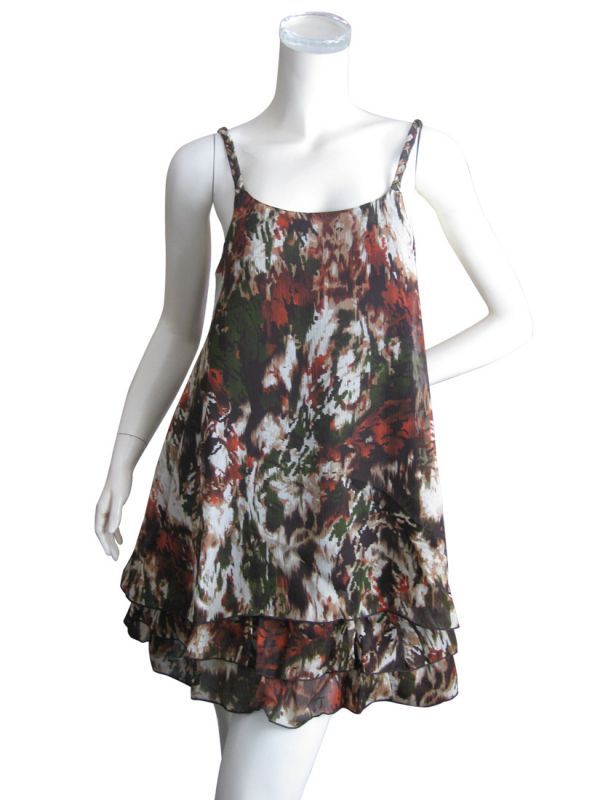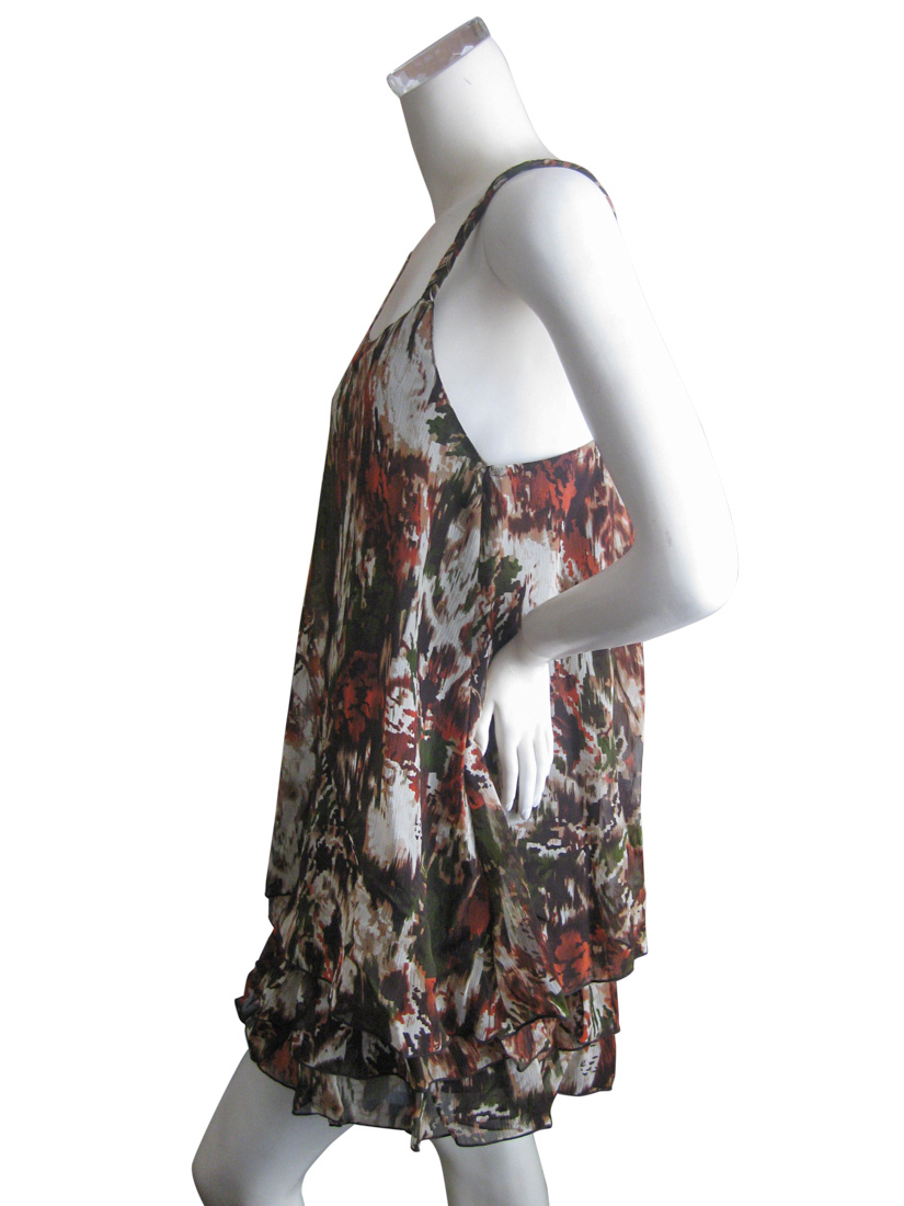 | 大人ガーリー♪シフォン水墨画風プリント キャミソールワンピース | |