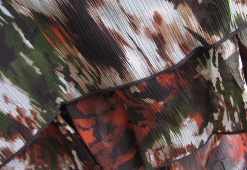 透け感のあるシフォン地にニュアンスある水墨画風プリントがシック!