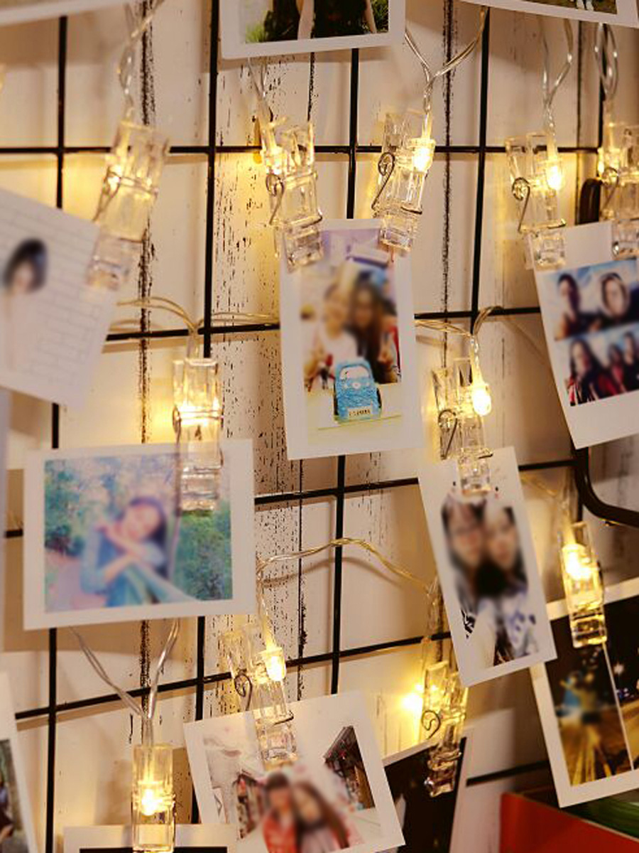 -20 clear photo clips. Each clip contains an LED that emits warm white light.