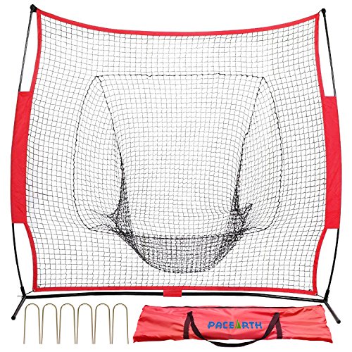 Baseball and Softball Practice Net 7x7 PACEARTH Baseball Portable Training Net with Extra 6 Fas...