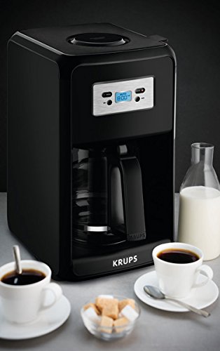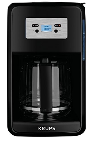 Brew up to 12 cups of great-tasting coffee with the KRUPS Savoy EC311050 programmable coffee maker. Its easy-to-read digital screen and intuitive control panel enables you to easily program your clock and program the auto-start. You can now wake up to the aroma of freshly brewed coffee or have a fresh pot ready and waiting when you want to entertain. Thoughtfully designed, the coffee maker also provides a pause-and-serve function that allows you to remove the carafe at anytime to enjoy a quick cup mid-brew. You can also enjoy the automatic keep warm function, for keeping brewed coffee perfectly heated for up to two hours. A glass carafe comes included, complete with a generous stay-cool handle for graceful serving. Other highlights include a front-facing water-level display and a gold-tone filter (no paper filters necessary), to prepare delicious coffee served at an optimal temperature. The EC311050 KRUPS Savoy coffee maker makes it easy to brew hot, robust, flavorful coffee every time. Get ready to savor your day.Feature