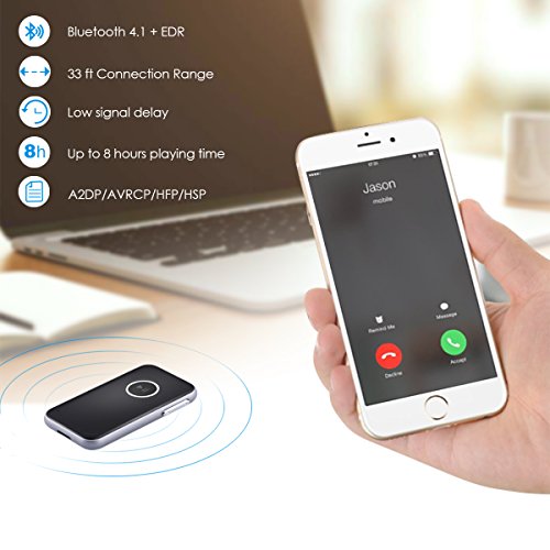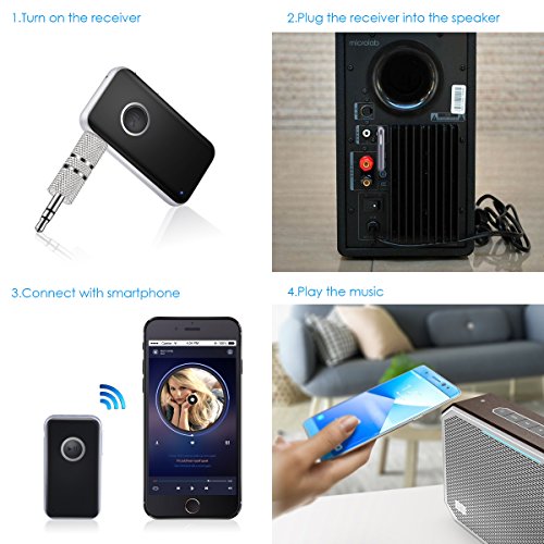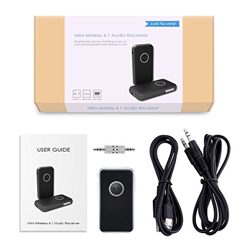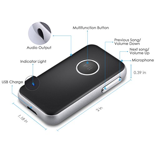 Description: Amir Bluetooth Receiver with the high version Bluetooth (4.1) supports HFP/HSP/A2DP/AVRCP mode. This little device is compatible with most Bluetooth enabled devices like smartphone, tablet, and etc. The wireless range high up to 30ft guarantee the stable signal and low signal delay. You can use the device for playing music or talking for 8 hours while only charge it 1.5 hours (fully charged). Besides, this device can connect to 2 devices at same time. And the device will automatically turn off, once it is out of signal or without connection in 5 minutes. Specifications: Dimension: 52mm*30mm*8mm/2.05*1.81*0.32 inches (L*W*H) Weight: 86g Material: ABS PC Bluetooth Version: V4.1 EDR Frequency: 2.4GHZ Operation: Class 2 Wireless Mode: HFP/HSP/A2DP/AVRCP Wireless Range: Up to 30 feet Charge Time:1.5 hours Playing Time: 8 hours Power Supply: Li-Po 110mAh Working Current: 15 mA (MAX) Charge Voltage: DC 5.0 V *Note: Press the multifunction button for 2sec to turn on/off the device. Long press button to up/down the volume. Please make sure your car has an 3.5mm AUX-in port so that you can choose the 3.5mm audio cable or adapter to connect the receiver to your car stereo system. Please charge it in time when in low battery or do not use it regularly, in case it won't normally work or damage the battery. Bluetooth signal can be blocked by surrounding objects and reduce the audio quality. Please put it in the right position without barrier between adapter and your phone (or other devices). Package Included: 1 x Bluetooth Receiver 1 x user manual 1 x AUX-in cable 1 x AUX-in adapter 1 x Charge cord Seller Warranty Policy: ● 45-Day Money Back Guarantee ● 12-Month Replacement Warranty ● 7/24 Online Customer Service ● Lifetime Support Guarantee 0 |