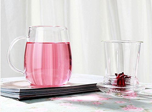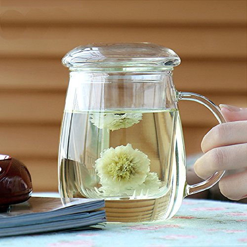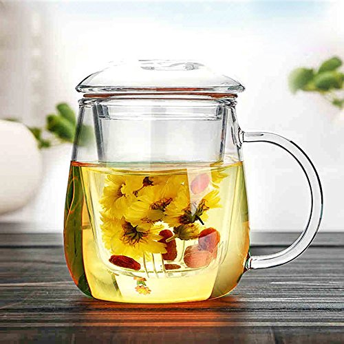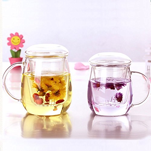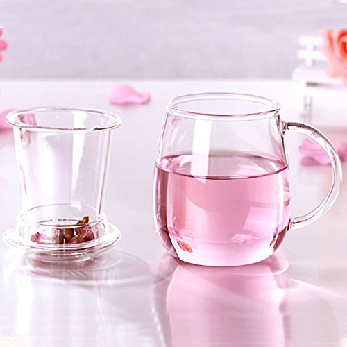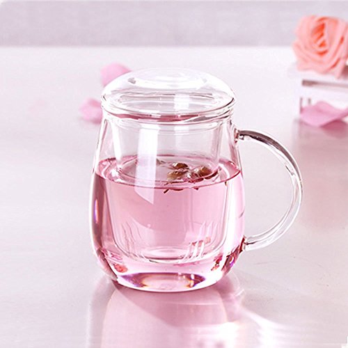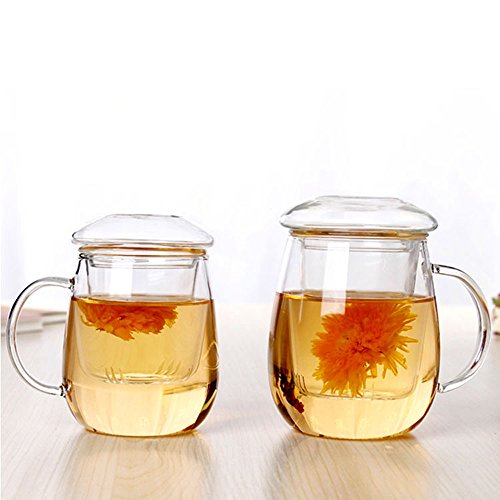 -. Feature : Made of Borosilicate glass that is stronger and more heat resistant than conventional glass. / Comes with 3 pieces -- glass cup, galss infuser and galss lid. / Can be used for hot, iced tea, coffee (bag cofee) brew. / Perfect for using at home,office,coffee shop, hotel,etc. / Material: Borosilicate Glass; Size: 8.5 x 12.5cm (D*H)