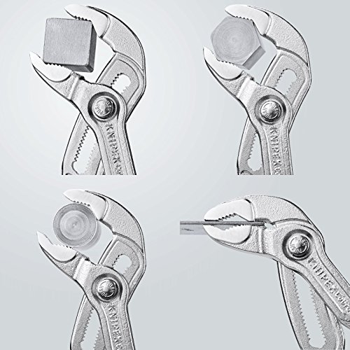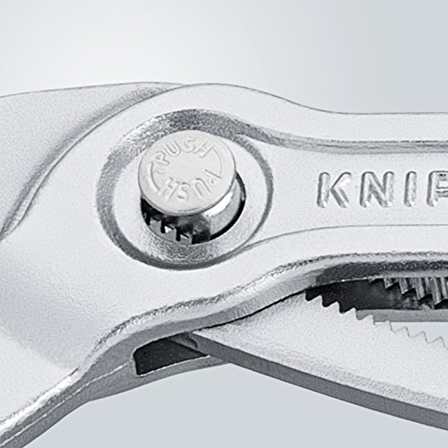 -. Feature : Einfach und schnell per Knopfdruck direkt am Werkstück einstellen / Fester und sicherer Halt durch Selbstklemmeffekt / Optimale Anpassung an verschiedene Werkstückgrößen dank 30-facher Feinverstellung / Handfreundlich auch bei längerem Arbeiten: Die Feinverstellung ermöglicht eine günstige Griffweite; der Klemmschutz verhindert Quetschverletzungen; komfortable Mehrkomponenten-Griffhüllen / Belastbar und langlebig: die spezialgehärteten Zähne (Härtegrad 61 HRC) und die Konstruktion mit durchgestecktem Gelenk garantieren Stabilität und besondere Verschleißfestigkeit, verchromte Oberfläche für besten Rostschutz