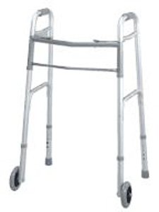 Studio : Skillbuilders Publisher : Skillbuilders Product Description folding 2-button walker, 3“ wheels-glides, adult, 1each Press the two buttons to fold for easy transport or storage.? Available with standard rubber tips or with front wheels and rear glider tips. Walkers are height adjustable: adult (32-39"); junior (25-32"); Oversize (32-39”). Product photo may not exactly match the product offered for sale. Please refer to the product description. 0
