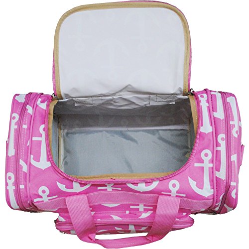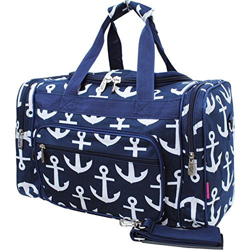 -. Brand : NGIL -. Department : womens -. Feature : Front Zipper Pocket(s), Rubber Feet on the Bottom / Double Zipper Closure, Two side zipper compartments / Carrying straps snap together with Velcro, Adjustable Shoulder Strap / Materials: Canvas / Dimensions: 17"(L) x 9"(H) x 11"(W -. Model : DDT417_000 -. MPN : DDT417_000 -. PartNumber : DDT417_000 -. ProductGroup : Apparel -. ProductTypeName : LAGE -. Title : White Anchors Print Carry on Shoulder 17" Duffle Bag