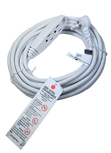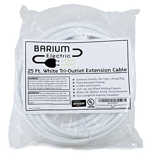 Barium Electric 25 Ft. Extension Cord Angled Plug White 25 Foot | 16 AWG | 1625 Watt | 13 Amp | 120 Volt - Electronics, Appliances, Power Tools - 3 prong, 16 gauge, w/ ground, 110-125V