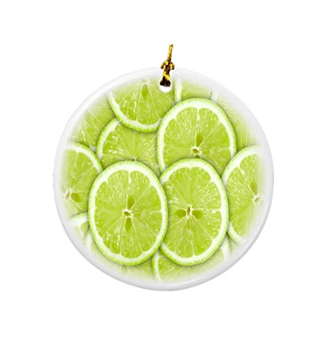 Rikki Knight Green Background with Citrus-Fruit of Lime Slices Design Round Porcelain Two-Sided Christmas Ornaments
