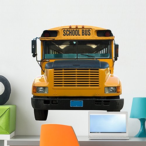 Wallmonkeys Front View of Yellow School Bus Isolated Peel and Stick Wall Decals WM190110 (24 in H x 24 in W)