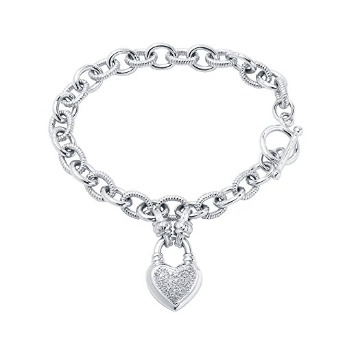 -. Title : Sterling Silver 1/4ct TDW Diamond Heart Locket Charm Bracelet