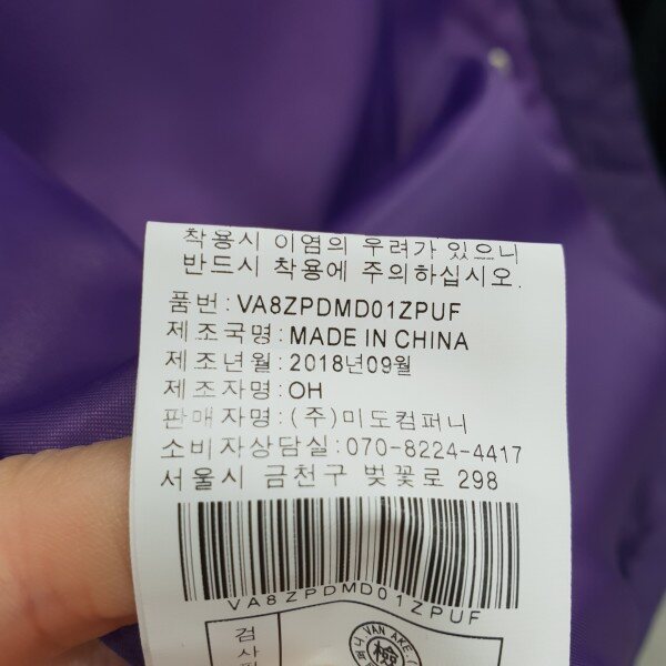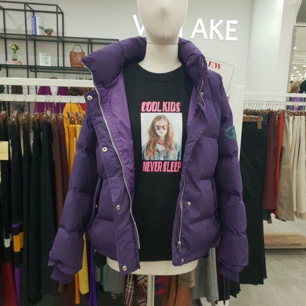 반에이크 에디션 폴리충전재 , 폴리소재의 하이넥 패딩점퍼레드,퍼플 컬러구성