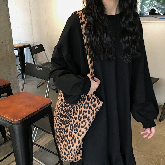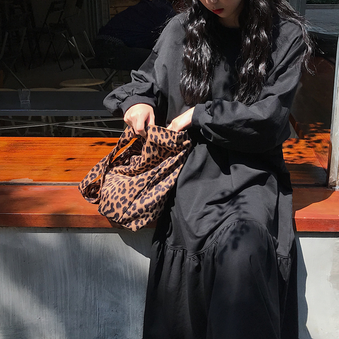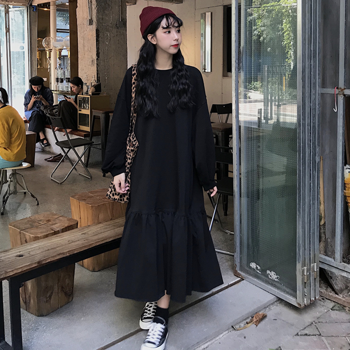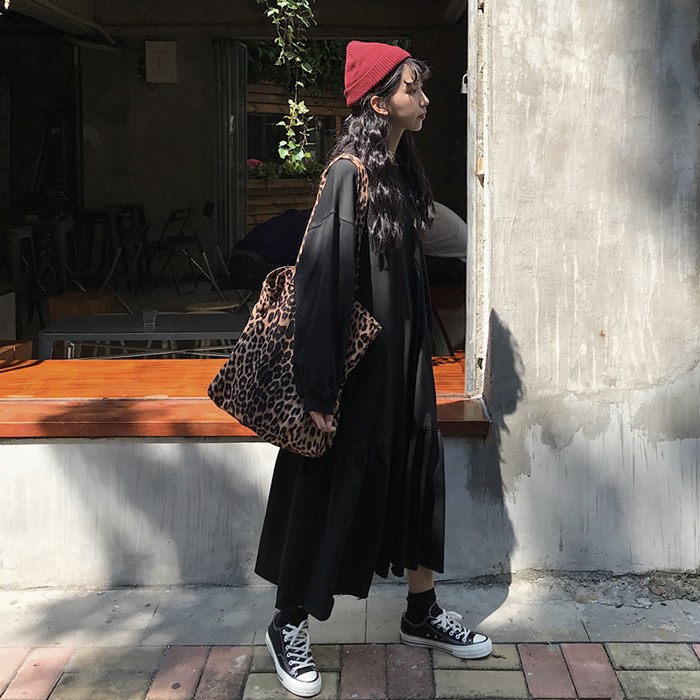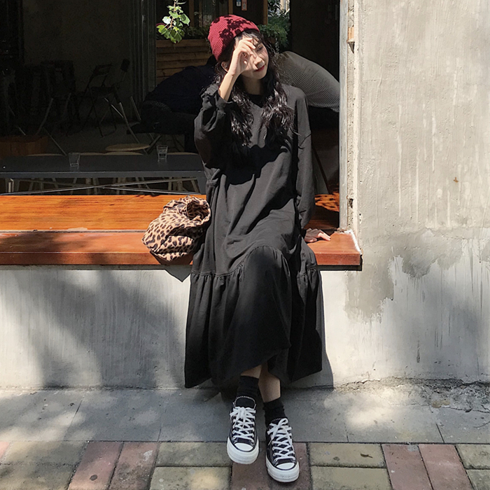 裾切り替えのワンピースで、シックな装いの中にキュートさを演出。