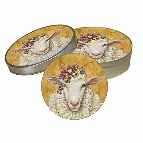 Paperproducts Design Pulpboard Coaster Set Featuring Vineyard Sheep Design, 4 x 1", Multi