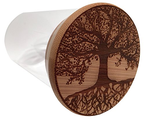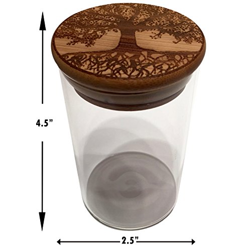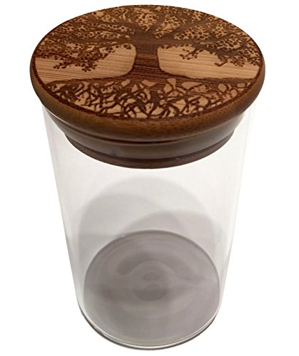 Tree of Life Stash Jar 250ml Glass and Bamboo Refillable Storage Container Wide Tall Mouth Jars (Tree of Life)