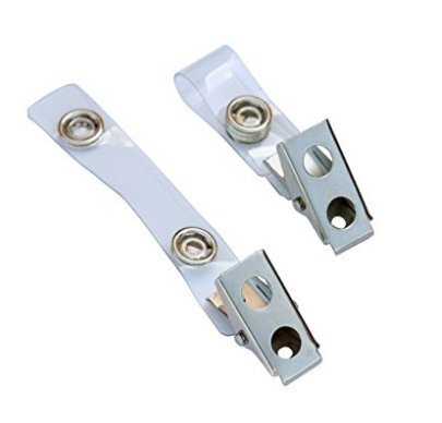 DE Metal Badge Clips with Clear Vinyl Straps (100 per Pack)