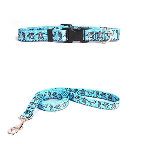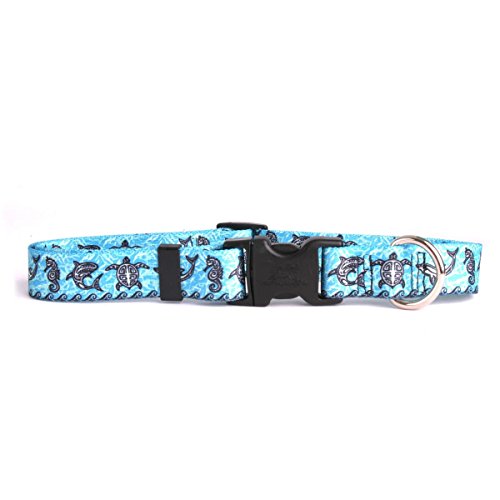 Studio : Yellow Dog Design Publisher : Yellow Dog Design Binding : Misc. Product Description This is the Tribal Seas Blue Dog Collar with Tag-A-Long ID Tag System - Size Large - 1 inch wide and fits neck sizes 18 to 28 inches from Yellow Dog Design, made right here in the USA. Keep your dog in the latest fashion with this stylish, functional and durable dog collar. TAG-A-LONG - This brand new, patent pending Pet ID Tag system is built right in to this dog collar. The Tag-A-Long system makes it easy to swap out ID tags from one collar to another, or to change ID Tags on the same collar. Perfect for when a special tag is needed at the dog park, on the beach, or as a service dog. We've included this special feature at no cost! EASY ON EASY OFF - Using a quick release clasp, the collar can easily be taken on or off the dog. Don't worry though, opposable thumbs are necessary to activate the quick release. SIZING: This dog collar utilizes a quick clasp closure, also called a side release clasp. Sizing is given as a range of neck lengths. Measure your dogs neck size or its current collar length (not including buckles) to obtain correct sizing. If you are shopping for designer, affordable dog/pet collars, then look no further. These durable, guaranteed to last dog collars have no rough edges, no threads to fray or break, no problem going in the wash, and no stress getting them on or off your dogs. 0