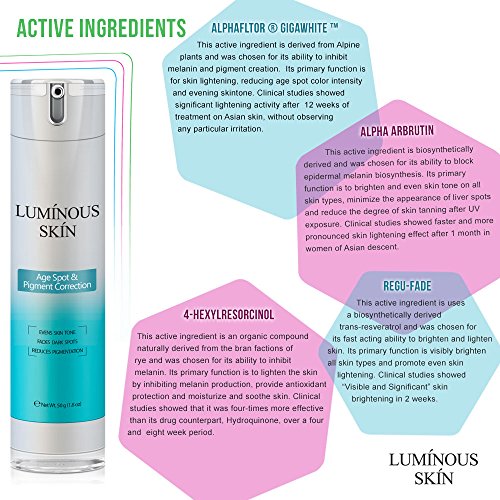 -. Title : Luminous Skin Skin Lightening & Face Brightening Serum for Age Spot and Pigment Correction (Hydroquinone-free)