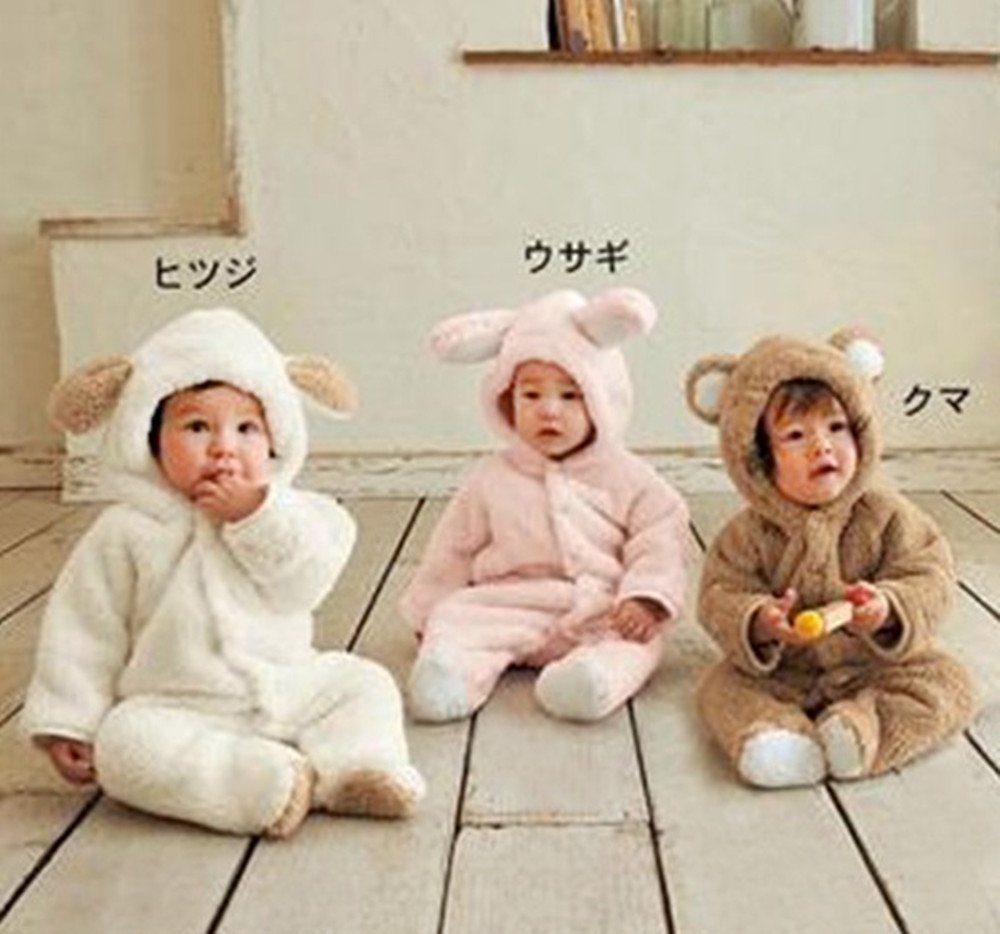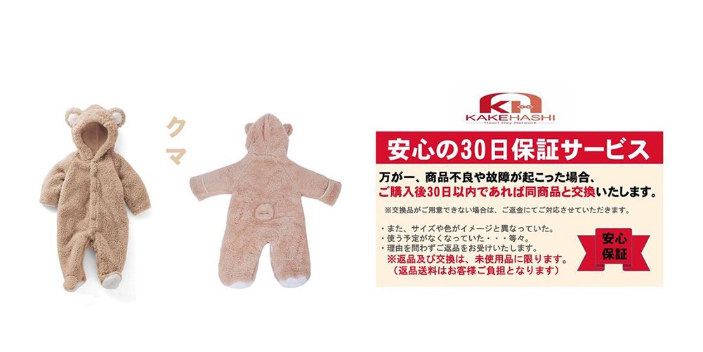 [KAKEHASI] Coverall beige bear bear baby clothes for baby with cute ear with bear bear 80 cm