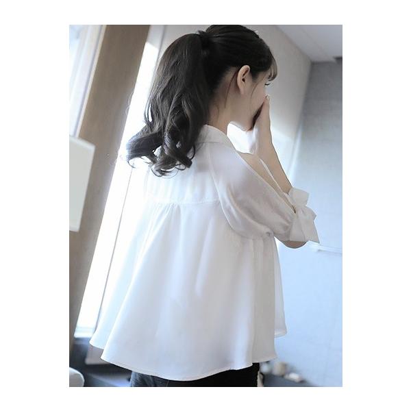 夏向けのゆったりしたシャツです!袖口のリボンがポイントです♪【カラー】ホワイト【サイズ】【S】胸囲92/丈51/袖丈30.5/スカートウエスト60-72/丈40(cm)【M】胸囲96/丈52/袖丈31/スカートウエスト64-78/丈41(cm) 【L】胸囲100/丈53/袖丈31.5/スカートウエスト68-84/丈42(cm)※製品により多少の誤差が生じる場合がございます。【ご使用上の注意】着用に問題のない製法のほつれ、商品の性格上、開封された商品・一度でも着用されました商品の返品・交換は一切お受け致しません。イメージと違う、サイズが合わない等の理由での返品は一切受け付けておりません。購入後のサイズ交換は対応しておりません。生産終了後すぐ発送しているため匂いがある場合がございます。ご了承ください。【生産国】made in china商品はご注文を頂いてから2週間前後の到着となります。