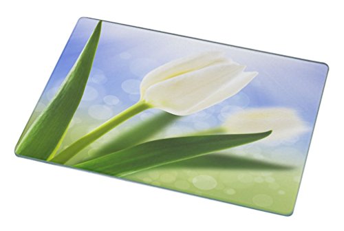 Rikki Knight White Tulip Macro on Beautiful Background Large Glass Cutting Board
