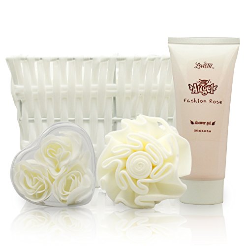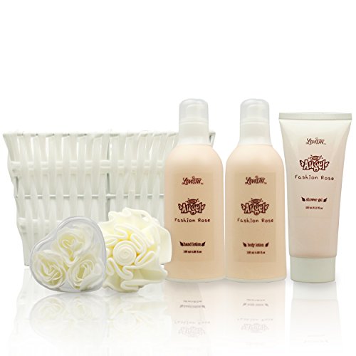 - ► THE IDEAL HOLIDAY GIFT YOUR BELOVED ONES WILL THANK YOU FOR! This Relaxing Fashion Rose Spa Gift Basket includes 5 Fragrance favorites. Exotic shower gel 125 ml, Bubble Bath 125 ml, Sensual Body Lotion 150ml, bath 4 White Elegant Soap Flowers and a White Eva Puff