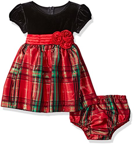 Bonnie Baby Baby Girls' Taffeta Plaid Party Dress and Panty, Black, 12 Months