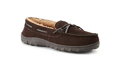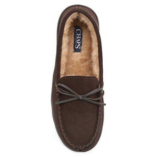 Chaps Men's Genuine Suede Leather Memory Foam Moccasin Slippers