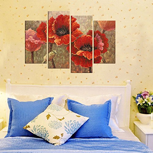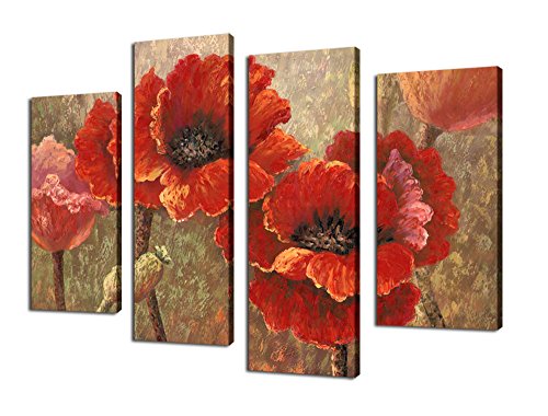 -. Title : Canvas Wall Art Red Poppy Abstract Painting P.R.Ints on Canvas Framed and Ready to Hang - 4 Panel Contemporary Painting Giclee P.R.Ints Fine Art Reproductions for Home and Office Decoration